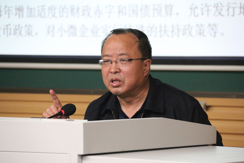 李含琳教授的报告主要从以下几方面展开:一、深入分析了当前国内外经济发展的基本形势,谈到了世界经济发展的大环境下中国经济发展中存在的问题,同时说明了甘肃经济发展过程中的制约因素;二、就“四个全面”(全面建成小康社会、全面深化改革、全面建设法治国家、全面从严治党)作了详细地解读;三、论述全面建成小康社会问题,指出建设小康社会的关键是经济小康,小康建设必须抓紧体制改革、注意“小康速度”问题;四、关于全面深化改革问题,李含琳教授分析了改革背景,详细介绍了改革面临的难题,提出深化改革手段是所有权改革、公司化改造、推行公司制、深度开放、要素市场等几个方面。最后李含琳教授就全面建设法治国家问题和从严治党问题进行了深入解读。