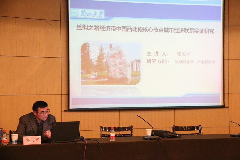 11月12日下午,应我院邀请,兰州大学经济学院院长、博士生导师郭爱君教授在我校本部逸夫图书馆一楼报告厅作了题为“丝绸之路经济带中国西北段核心节点城市经济联系实证研究”的专场学术报告。我院百余名师生参加。