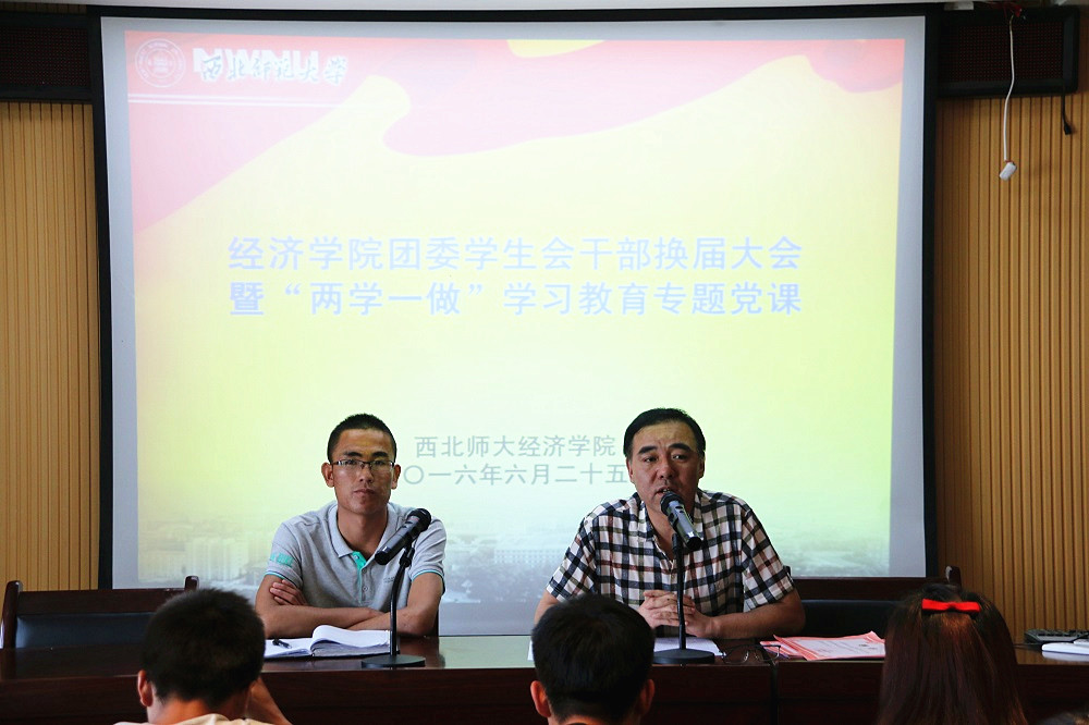 吴永伟副书记以“两学一做”学习教育活动开展的背景为出发点,从共产党员的理想信念、价值取向、党性意识、知识更新、思想境界、群众评价、自身形象等方面,强调在学好“党章党规、系列讲话”的基础上,把学习和实践结合起来,以学促做、知行合一,努力做合格的共产党员、做优秀的共青团员、做称职的团学干部。