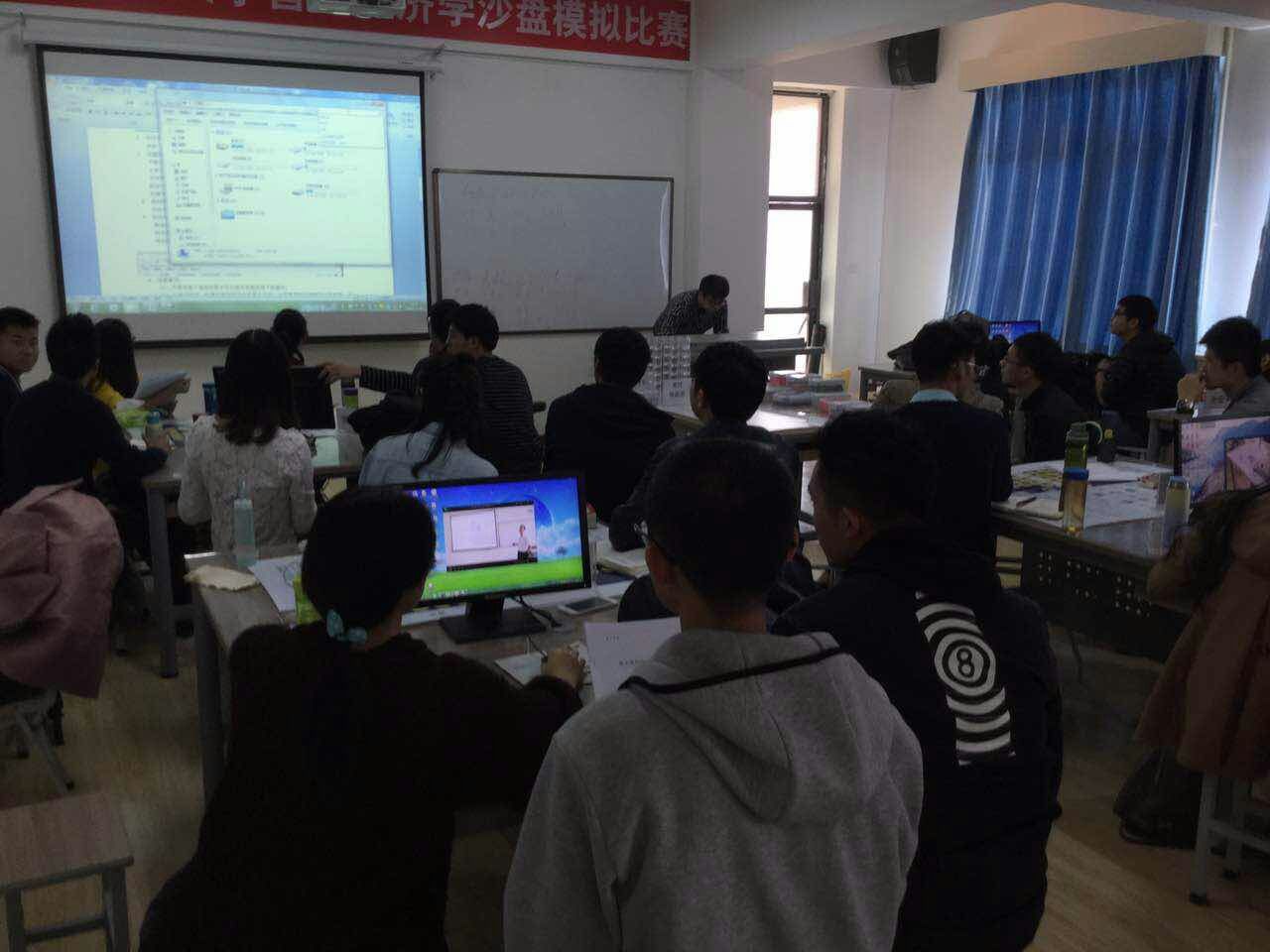 此次比赛研究生踊跃报名,人数是去年的两倍,分为两个商业银行组合两个企业组共四个小组进行学习。为准备比赛,雷雨、潘癸邑、张蓉等参加了第一届商业银行沙盘模拟经营大赛的冠军成员前来和大家交流经验,四个小组开始了全面的培训学习。小组之间相互竞争,小组内部团结协作,形成了良好的竞争与合作氛围。培训过程中财政金融系梁红梅老师、何红霞老师到现场为大家鼓劲,鼓励大家努力培养自身的实践能力,要做到学以致用。