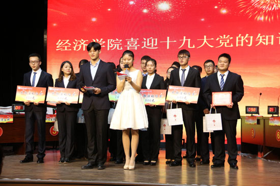 经过必答题、风险抢答题、选择论述题三个环节紧张而激烈的角逐,研究生第四党支部代表队获得一等奖,经济学专业学生党支部、金融学专业学生第二党支部代表队获得二等奖,研究生第二党支部、研究生第三党支部、金融学专业学生第一党支部代表队获得三等奖,研究生第一党支部、国际经济与贸易专业学生党支部、经济统计学专业学生党支部代表队获得优秀奖。