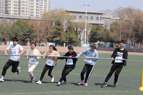 “18国贸,加油加油!”啦啦队高亢嘹亮地呐喊着。获得拔河比赛第一名好成绩的2018级国际经济与贸易班班长景朋旺说:“在比赛中,我们班的同学们都鼓足了劲,双手紧握着缰绳,双脚紧抓着地面,全力以赴地为班级争取好成绩。”