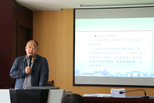 学院党委副书记吴永伟首先介绍本次培训的背景和意义,本次培训是深入贯彻落实习近平新时代中国特色社会主义思想、党的十九大精神和全面落实从严治党的需要,是扎实落实“两学一做”常态化制度化、引领提升党支部建设标准化的需要,是进一步规范党员发展工作的需要,是着力提高学院党务工作者工作能力和水平的需要。