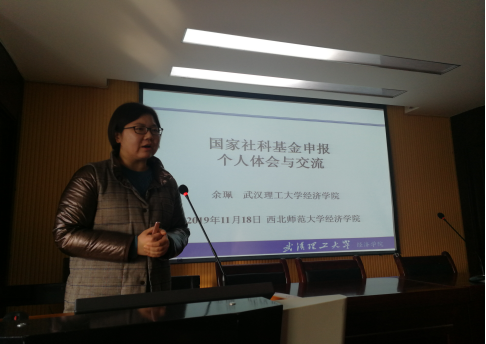 2019年11月18日,武汉理工大学经济学院余珮教授应邀来我院做了以《国家社科基金申报个人体会与交流》为题的学术报告,报告由必赢线路检测中心院长杨立勋教授主持,学院20余位教师参加了此次报告。