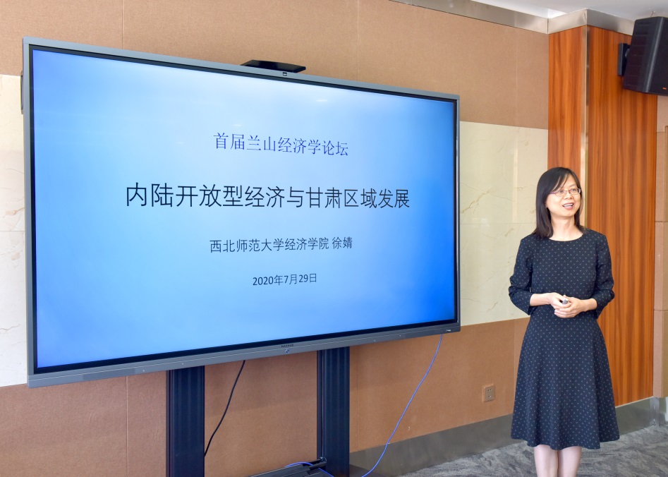 7月29日由兰州大学经济学院主办的首届“兰山经济学论坛”在兰州大学齐云楼举行,杨立勋院长等参加了本次论坛。徐婧副教授提交的《内陆开放型经济与甘肃区域发展》一文被遴选入会并做主旨报告。在报告中,徐老师阐述了内陆开放型经济的定义及十九大以来内陆开放型经济发展的最新动向,甘肃作为丝绸之路经济带黄金段发展发展内陆开放型经济的战略机遇和挑战,提出了甘肃省建设双向高水平内陆开放型经济试验区,以开放促改革、促发展、促创新的具体路径。