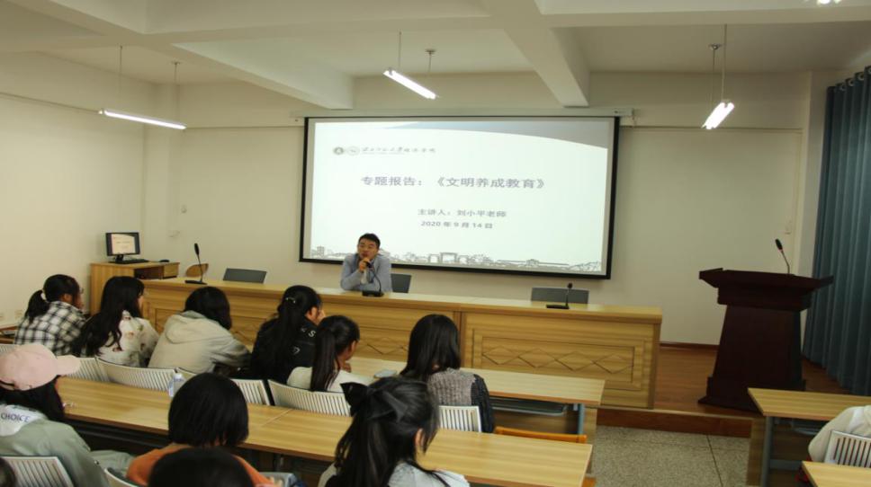 9月14号下午,必赢线路检测中心新生入学教育之文明养成教育在教学10号楼C区313室顺利进行,专职辅导员老师刘小平担任主讲人,2020级全体新生参加此次讲座。