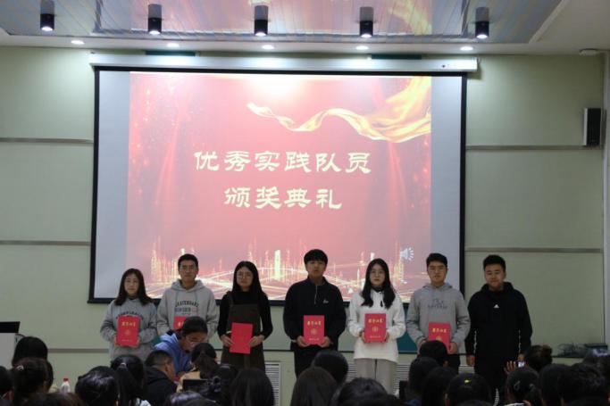 分享会进程中,校团委丁岩老师为王爱国、卢婷婷等六名优秀实践队员代表颁奖。