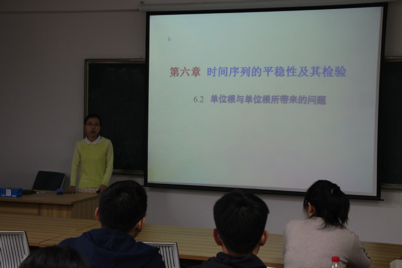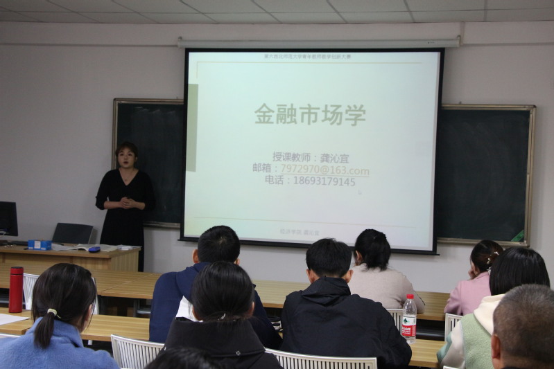 复赛分为两个环节,第一个环节三位青年教师分别进行了教学展示。龚沁宜老师展示了《金融市场学》中的资产证券化,她教态自然大方,语言亲和力强,通过生活化的实例使枯燥的定义生动容易理解。卓玛草老师展示了《中级计量经济学》中单位根及单位根所带来的问题,卓玛老师对所讲授的内容非常熟练,对理论问题层层剖析,究其根源。刘妍平老师讲授了《概率论与数理统计》中的方差,给出随机变量方差的概念及计算,方差的性质,最后做出小结。内容详实体系完整。三位青年教师充分地展示了他们在教学上的能力和成长。