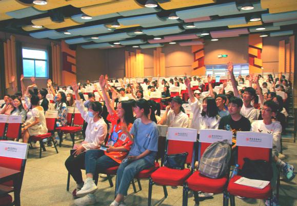 经过了第一阶段比赛以及加时赛的激烈角逐,共有八支代表队进入到了第二阶段的比赛“争分夺秒”抢答环节,竞赛现场秩序井然、精彩纷呈。此外,观众互动环节将整场竞赛的气氛推向了高潮,台下的同学们争相回答党史知识竞赛题目,气氛庄重而热烈。