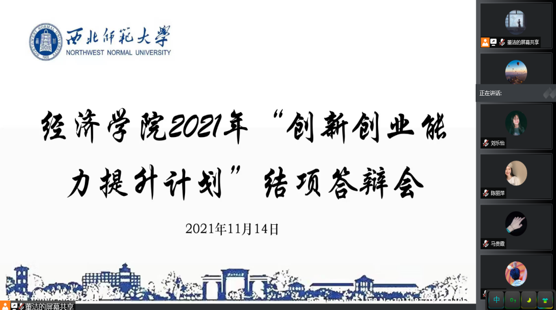 11月14日下午,必赢线路检测中心在线上举办2021年“创新创业能力提升计划”结项答辩会,本次答辩邀请到了学院崔治文教授、石红莲副教授、何红霞副教授担任评委。辅导员刘小平、汪晟以及课题研究类项目组和创新创业项目组全体成员参加此次答辩会。