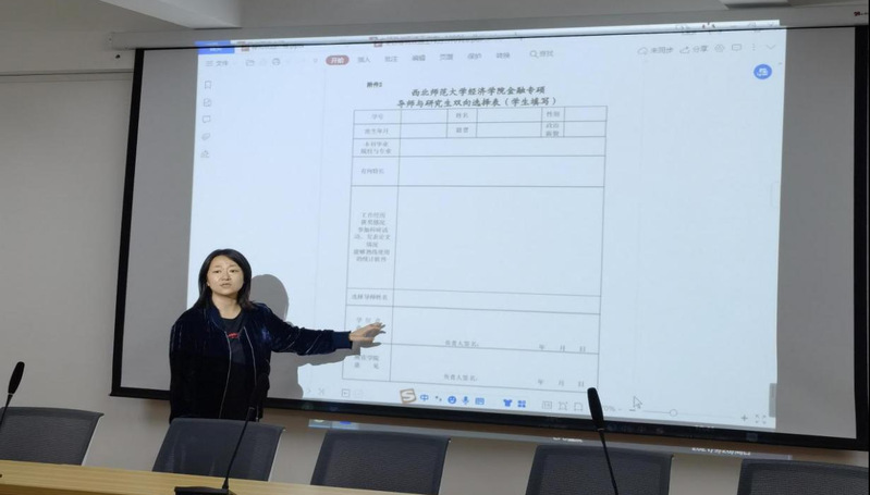单美姣副教授仔细讲解了双向选择表填写时应重点注意的事项,敦促学生会后积极主动、认真有序地参与和完成两个批次的导师选择,并对2021级金融专硕研究生新生送上美好祝愿。现场同学们认真聆听了会议内容并进行记录。此次双向选择方案介绍会对2021级金融专硕导师双选的顺利实施和专硕研究生科研方向的选择和能力培养将起到积极的促进作用。