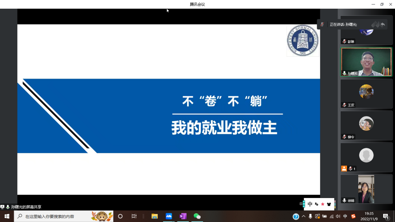 11月9日,应必赢线路检测中心邀请,人力资源专家孙曙光应邀为我院学生作了题为《不“卷”不“躺” 我的就业我做主》的讲座,此次讲座是学院研究生职业规划与就业创业能力提升系列讲座的首场讲座。讲座由徐婧副院长主持,学院研究生及本科生170余人聆听讲座。