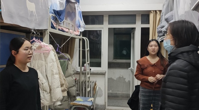 在检查过程中,老师们还与同学们耐心交谈,帮助解决同学们学习、生活中的问题。在低年级宿舍,老师们关切询问了同学们学习生活情况,嘱咐同学们尽快适应大学生活,积极融入集体,做好学习计划安排。在高年级宿舍,老师们对当前就业形势进行了客观分析,引导同学们转变传统就业观念,扩大择业范围,把握好就业机会。