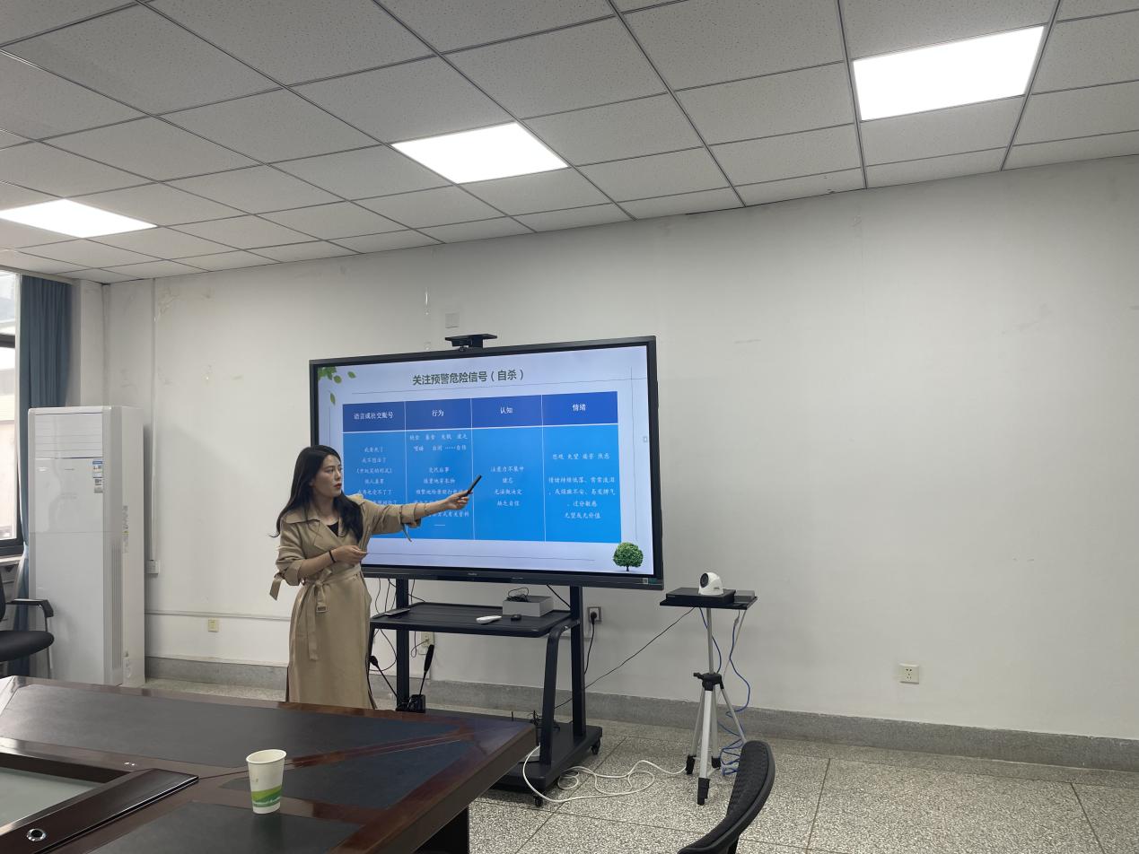 张晓琴老师从心理危机工作案例出发,与在座的老师们展开深入交流,共同探讨对心理危机的认识、预警干预流程与注意事项、“校、院、班、舍”四级预警体系的运用、家校共育等工作难点和工作方法。结合心理疾病特征讲解如何识别学生的心理健康状况,旨在帮助导师、班主任、辅导员们更有效、更规范地开展心理危机干预工作。在这个过程中,老师们建言献策,头脑风暴,相互学习,共同促进心理育人工作效果的提升。