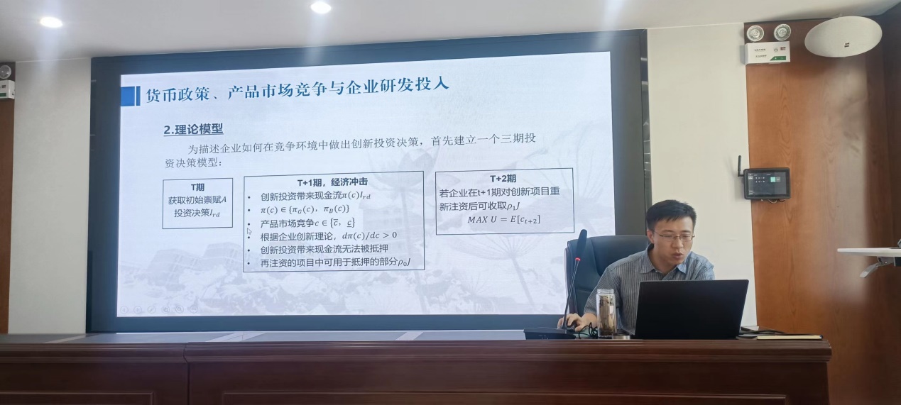 7月7日下午,学院王庭锡博士在致公楼C区313多功能报告厅作了题为《货币政策对中国企业创新的影响研究》的学术报告。学院师生30余名参加了本次报告会,报告由副院长陈开军主持。