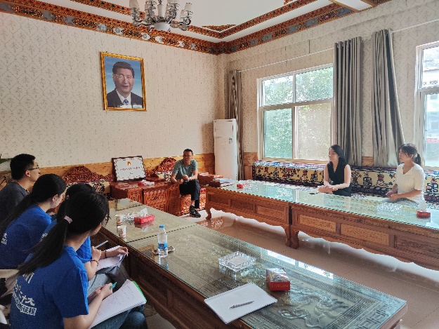 村干部与实践队员进行面对面访谈,对队员们的宣传和调研工作予以肯定和支持,分别介绍了搬迁前后的“一个跨越”、“三个转变”、“两个提升”、“一个增强”,即从全面脱贫到乡村振兴的过程,然后就坪垭藏族乡的发展路径、产业建设情况、村民脱贫、招商引资、形象宣传、环保政策和教育资源等情况做了详细介绍。